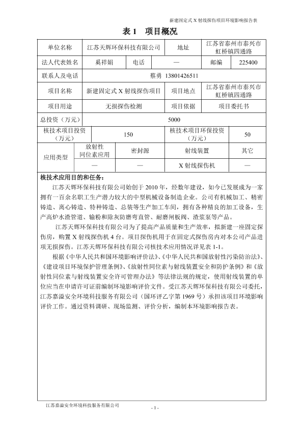 江苏天辉环保科技有限公司新建固定式x射线探伤项目报告表_94229.pdf