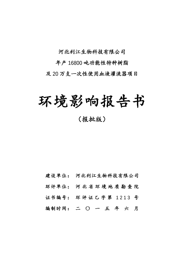 年产16800吨功能性特种树脂及20万支一次性使用血液灌流器项目8279.pdf