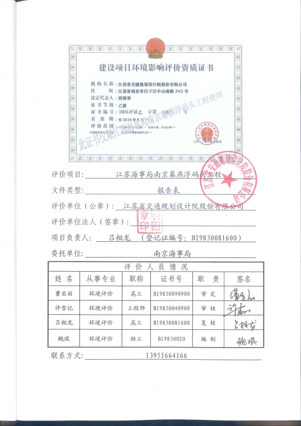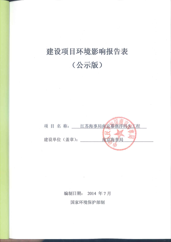 1、江苏海事局南京幕燕浮码头工程环境影响报告表全本公示