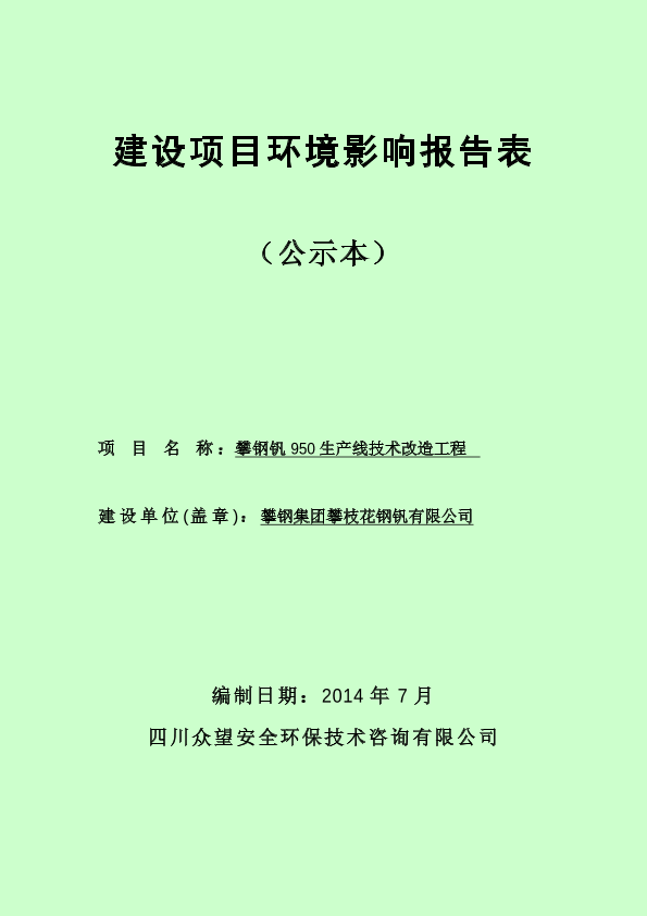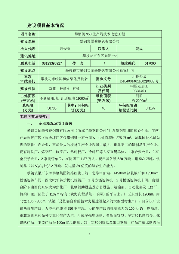 1、攀钢集团攀枝花钢钒有限公司攀钢钒950生产线技术改造