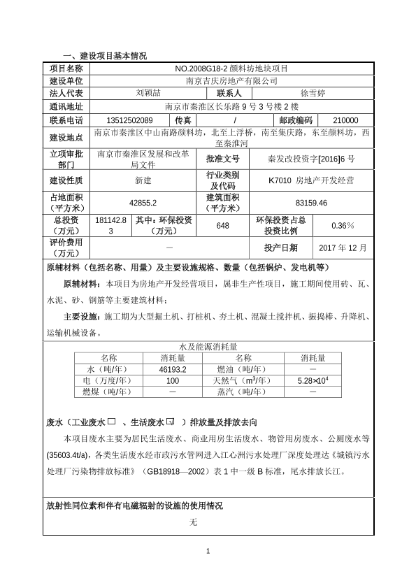 南京吉庆房地产有限公司no2008g18-2颜料坊地块项目环境影响报告表全本公示1483.pdf
