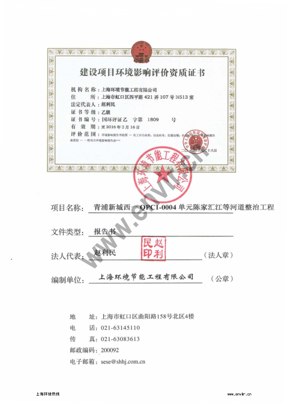 青浦新城西一QPC1-0004单元陈家汇江等河道整治工程环境影响评价报批前公示9790