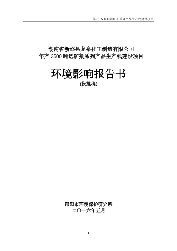 湖南省新邵县龙泉化工制造有限公司年产3500吨选矿剂系列产品生产线建设项目受理情况公开749697596.pdf