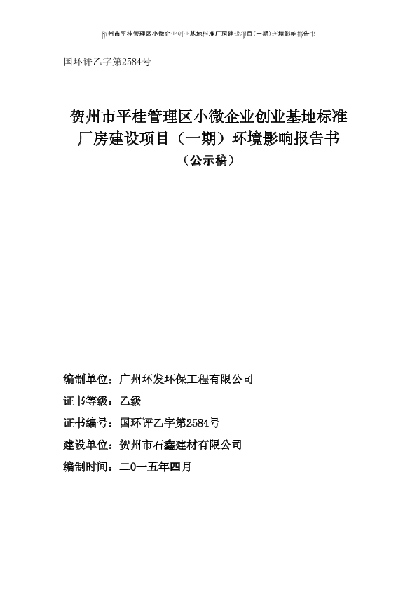 贺州市平桂管理区小微企业创业基地标准厂房建设项目(一期)环境影响报告书_849860.pdf
