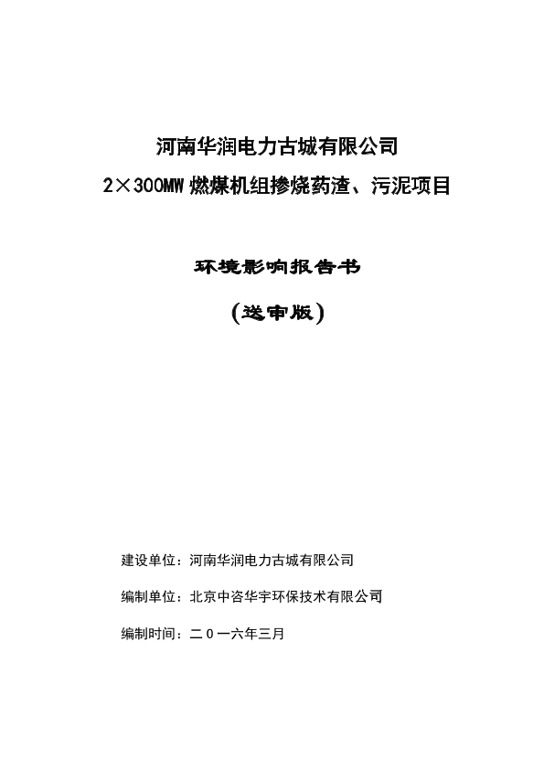河南华润电力古城有限公司2×300MW燃煤机组掺烧药渣、污泥项目7580.pdf