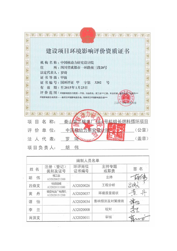 秦山第二核电厂3&4号机组 长燃料循环项目