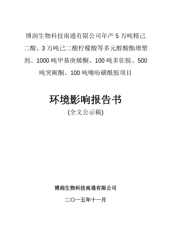 博润生物科技南通有限公司年产5万吨精已二酸等项目环境影响报告书公示455298885.pdf