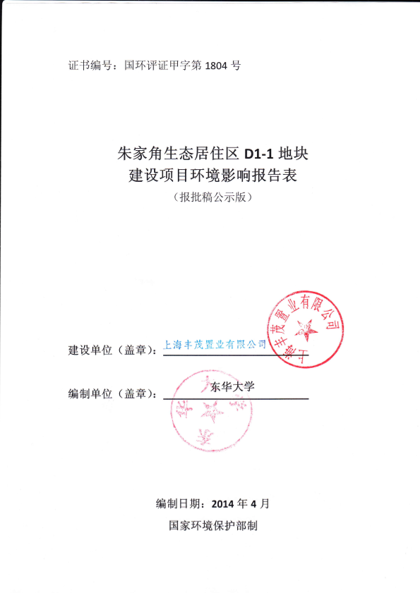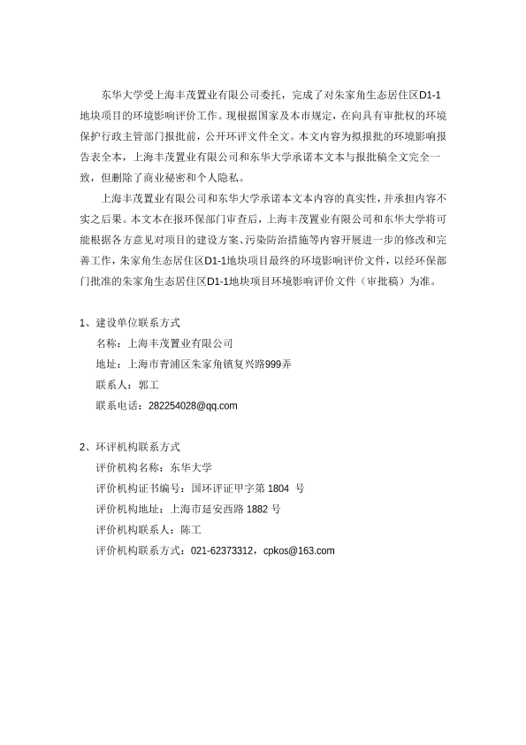 1、朱家角生态居住区D1-1地块项目环境影响评价报批前公示8794