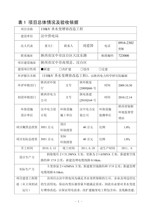 1、110kV福成输变电验收报告表4734