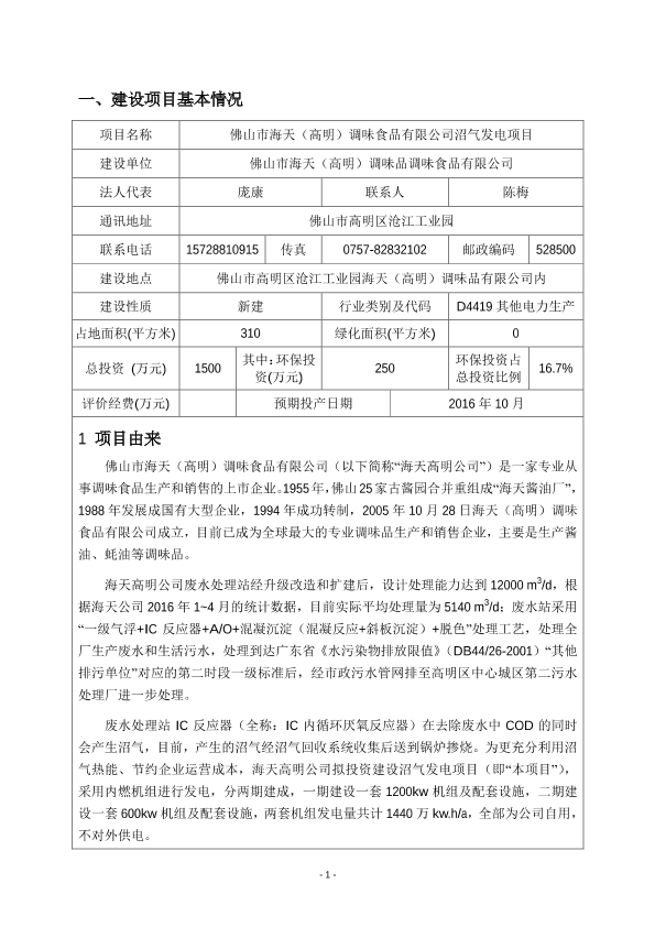 佛山市海天(高明)调味食品有限公司沼气发电项目环境影响报告表_5018.pdf