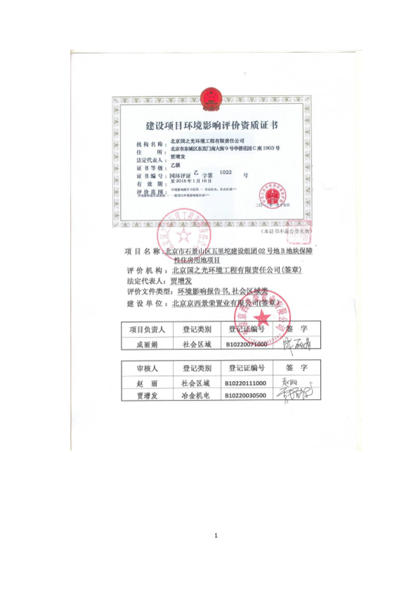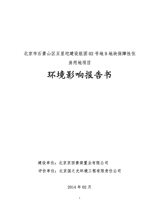 1、北京市石景山区五里坨建设组团02号地b地块保障性住房用地项目项目