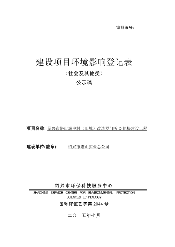 4、关于绍兴市塔山实业总公司绍兴市塔山城中村改造罗门畈地块建设项目审批前公示