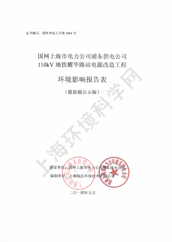 4、110kV地铁张杨站电源改造工程环境影响评价8464