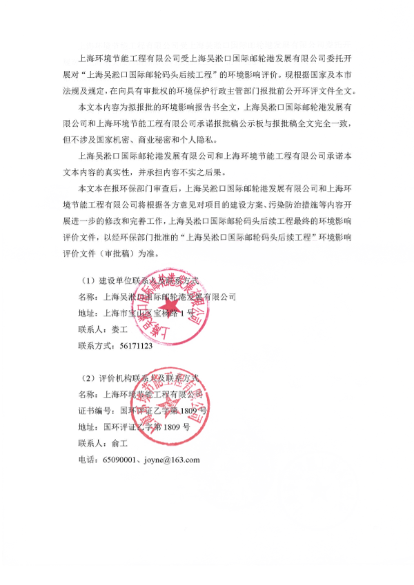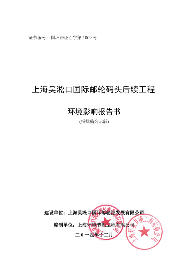 1、上海吴淞口国际邮轮码头后续工程环境影响评价报批前公示7458