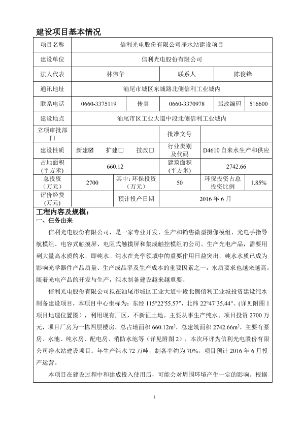 信利光电股份有限公司净水站建设项目报告表_8442.pdf