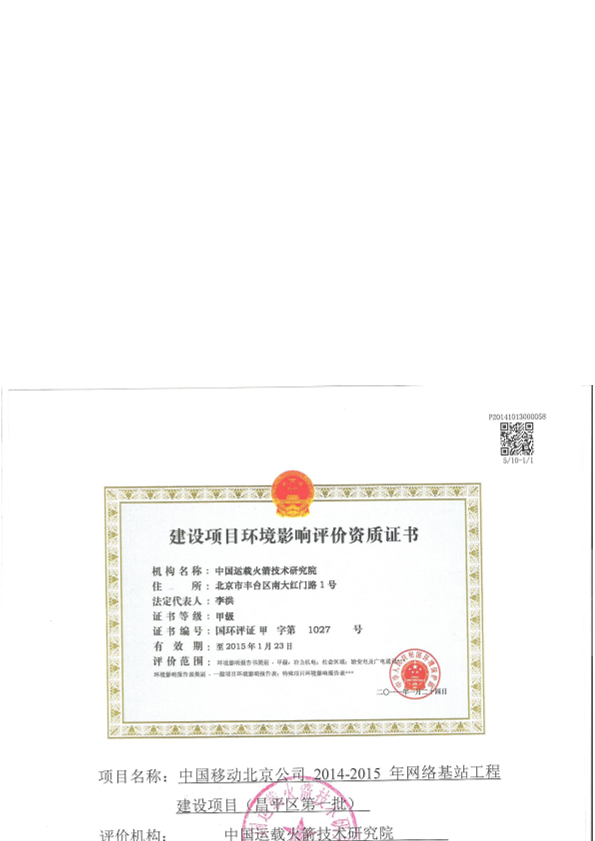 中国移动北京公司2014-2015年网络基站工程建设项目(昌平区第一批)6427