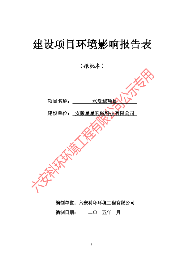 安徽星星羽绒科技有限公司水洗绒项目环境影响报告表审批前公示5799.pdf