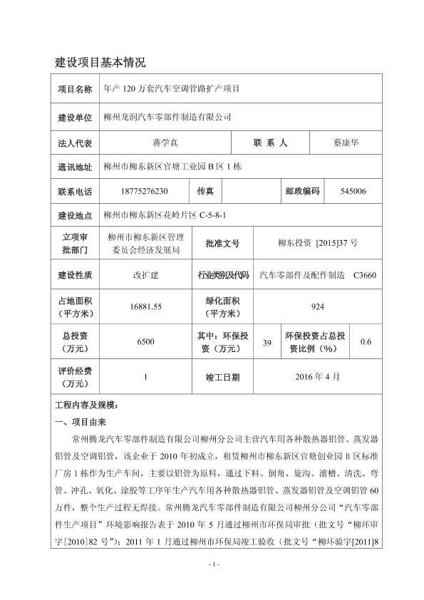1、年产60万套汽车空调管路件生产项目环境影响报告表审批665102334