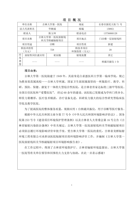 1、吉林大学第一医院SPECTCT改扩建辐射项目8530