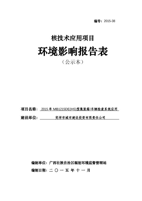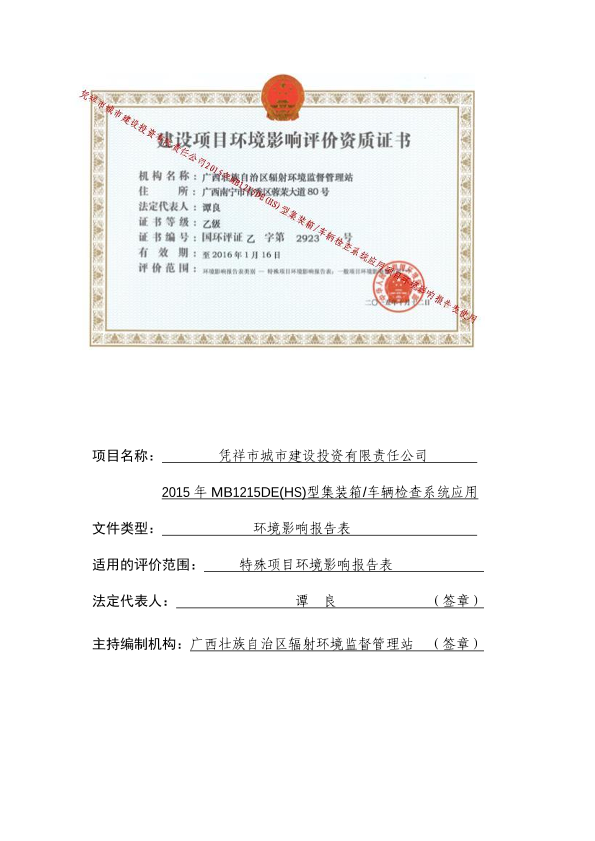 凭祥市城市建设投资有限责任公司2015年mb1215de(hs)型集装箱、测量检查系统应用项目环境影响报告表审批333153770