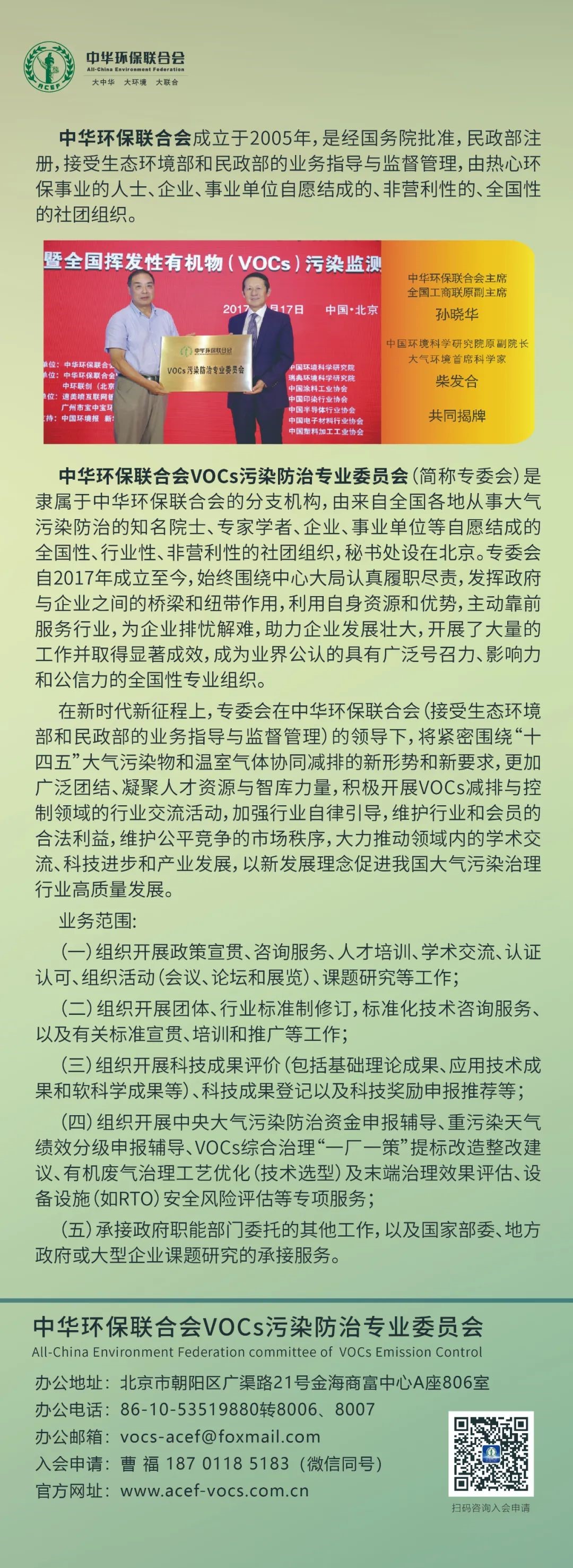创新服务方式,为企纾难解困——由中华环保联合会VOCs污染防治专业委员会特别策划组织的“工业废气治理工程设计与安全风险管控技术服务站”隆重亮相2023世环会(上海国家会展中心5.1号馆H385)。一方面,组织了知名环保专家和技术人员现场为工业企业提供涉VOCs治理“义诊”帮扶指导、答疑解惑;另一方面,遴选了无锡爱德旺斯科技有限公司、南京普瑞泰格安全设备工程有限公司、德州新景环境科技有限公司、广东汀大生物科技有限公司、江苏复森特种阀门有限公司和昆山工统环保科技有限公司等优秀会员单位代表现场展示了环保技术、装备和产品。