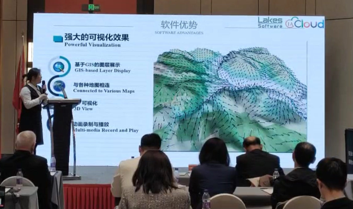 作为加拿大知名环境模型企业Lakes Environmental公司在中国的经销商,尚云环境在会上由环境咨询事业部经理赵亚丽进行了精彩的主题报告。她详细介绍了Lakes Environmental的核心业务领域,以及所提供的先进产品与服务;特别强调了尚云环境销售的Lakes Environmental环境模型软件产品(如CALPUFF View等)的强大可视化效果和数据处理便捷性,这些都是我们在市场上保持竞争力的关键因素。