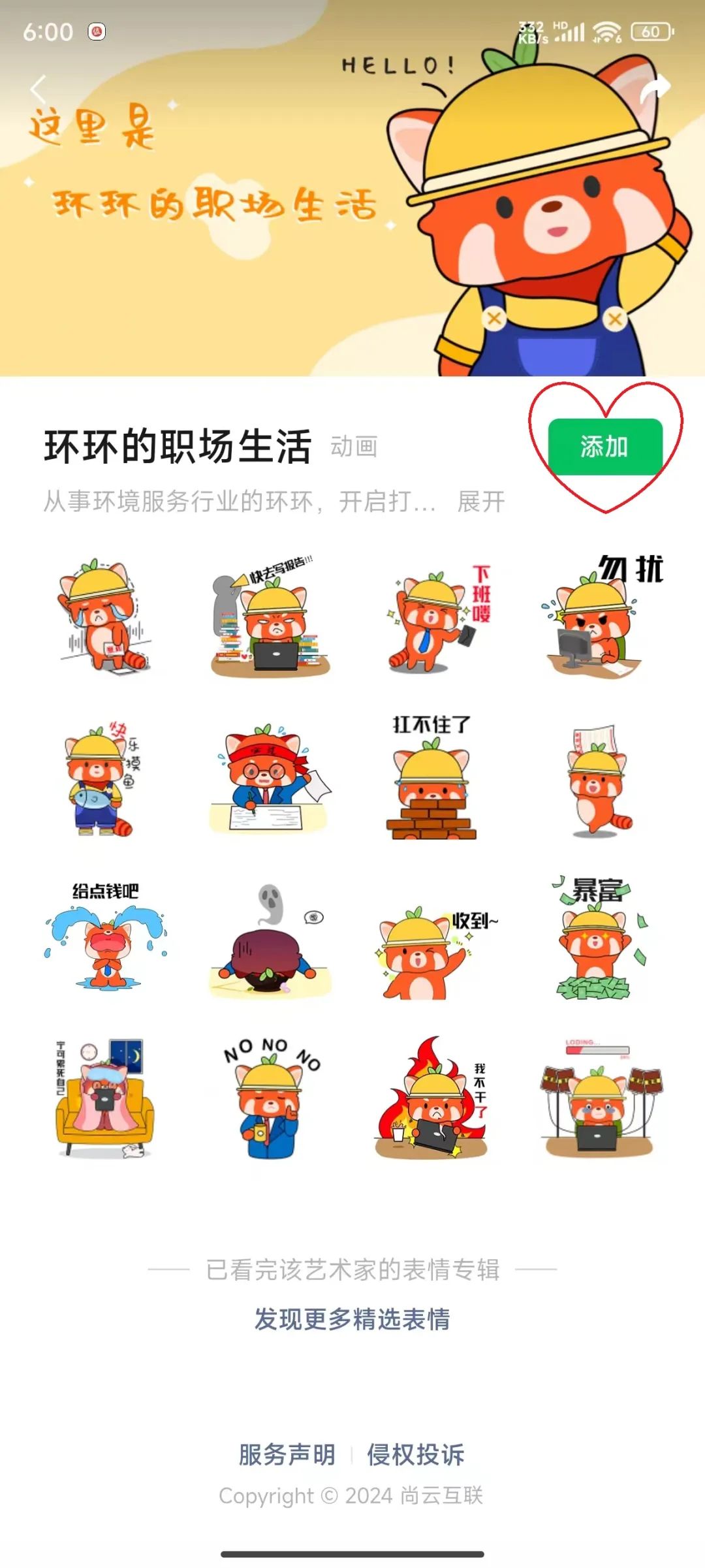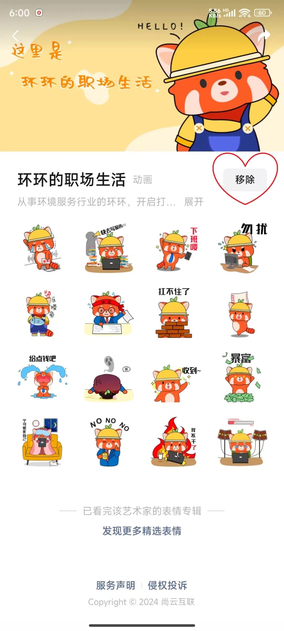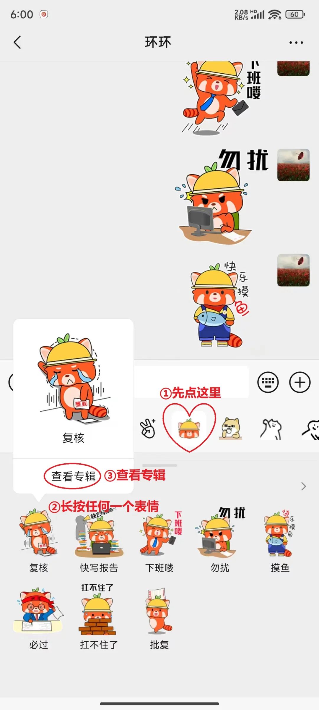 添加失败的小伙伴可以尝试:先在微信表情中找到【环环的职场生活】表情包专辑▶▶长按任何一个表情▶▶点击【查看专辑】进入【环环的职场生活】专辑▶▶点击【移除】▶▶再重新点击【添加】即可▼