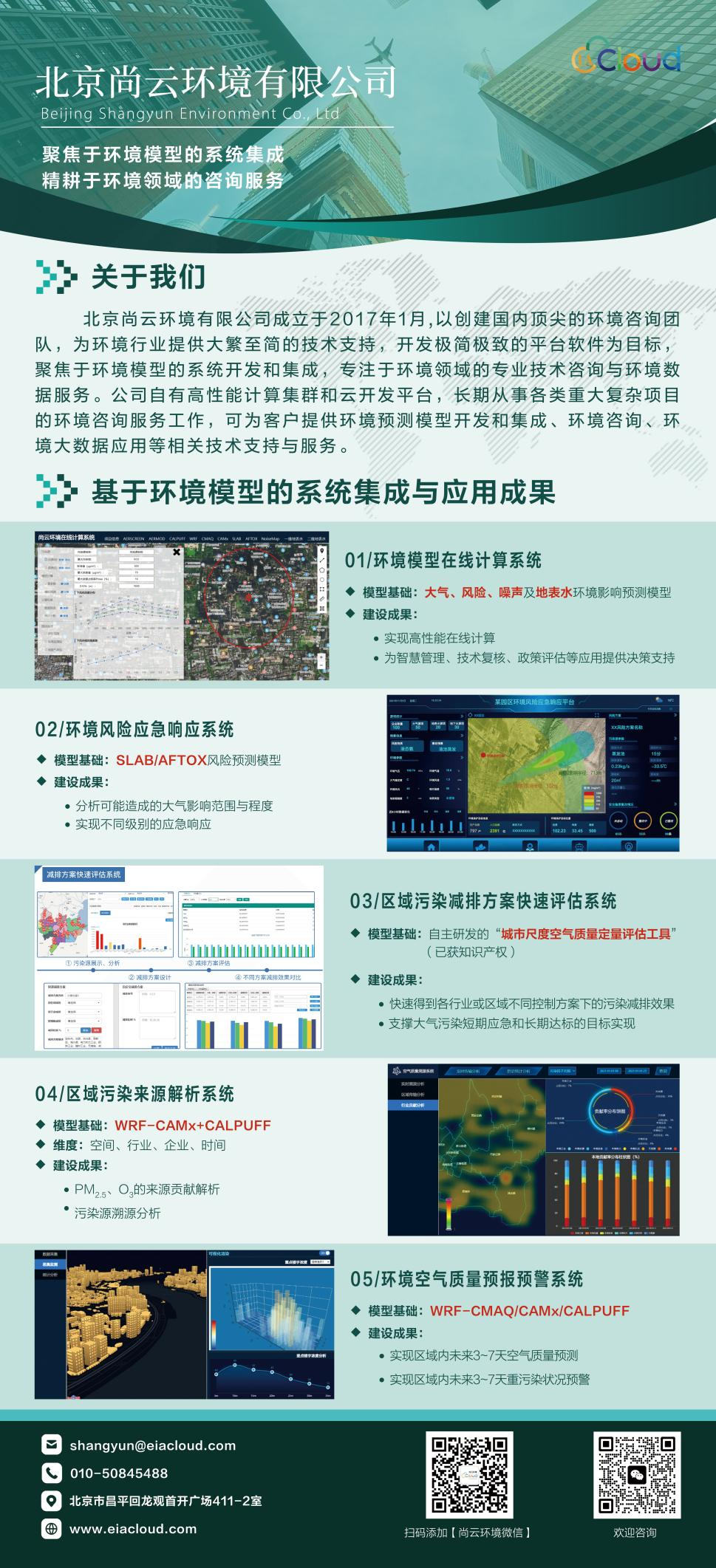 尚云环境以“聚焦于环境模型的系统集成,精耕于环境领域的咨询服务”为愿景,长期从事各类重大复杂项目的环境咨询服务工作,具有丰富的环境咨询经验,同时公司自有高性能计算集群和云开发平台,具备强大的计算和开发能力,提供环境咨询服务、环保一体化解决方案、环境模型与数据服务、专业技术与技能培训、云助手APP等相关技术支持与服务,我们将永葆初心,不断进取,为祖国的绿水青山添砖加瓦。