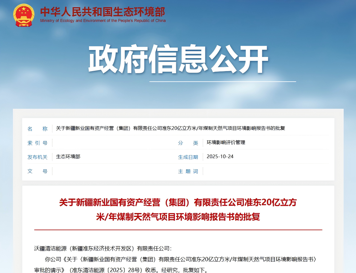 煤制气作为依托国内煤炭资源的战略性产业,是保障能源安全的重要支撑。此次获批的新疆新业煤制气项目,位于国家煤制油气战略基地,区域面临较大的环境质量持续向好压力,因此大气评价专题作为项目环评的核心组成部分,直接决定项目是否符合区域环境承载力要求,堪称审批“重中之重”。