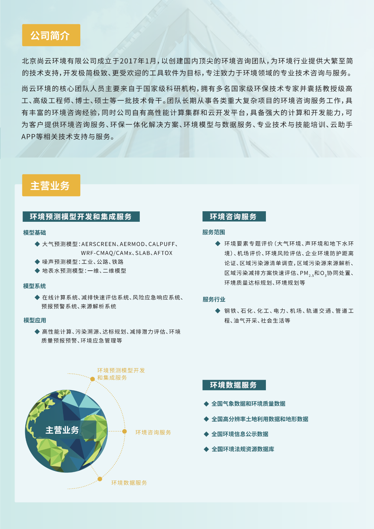 尚云环境以“聚焦于环境模型的系统集成,精耕于环境领域的咨询服务”为愿景,长期从事各类重大复杂项目的环境咨询服务工作,具有丰富的环境咨询经验,同时公司自有高性能计算集群和云开发平台,具备强大的计算和开发能力,提供环境咨询服务、环保一体化解决方案、环境模型与数据服务、专业技术与技能培训、环评云助手AI大模型等相关技术支持与服务,我们将永葆初心,不断进取,为祖国的绿水青山添砖加瓦。