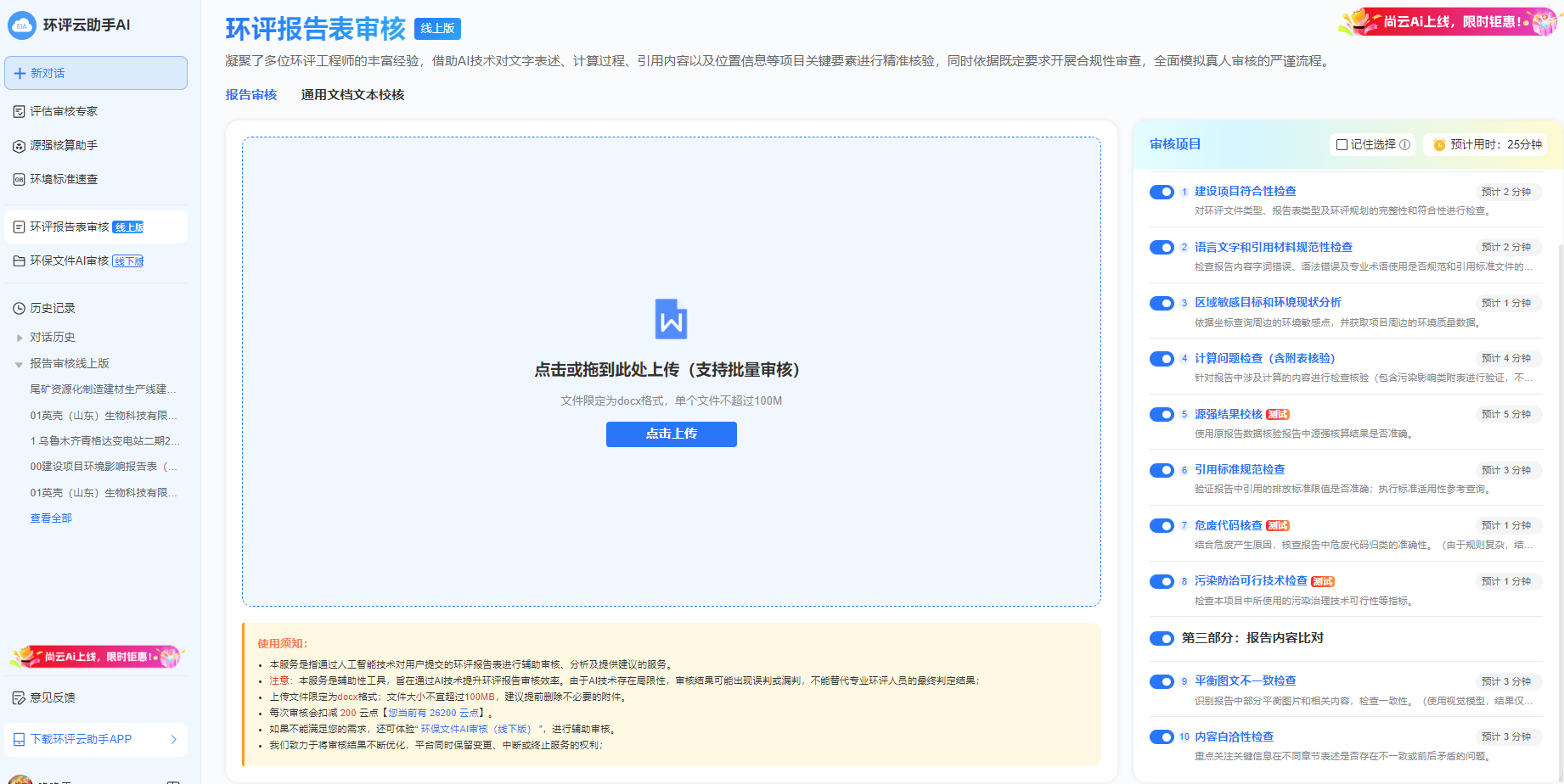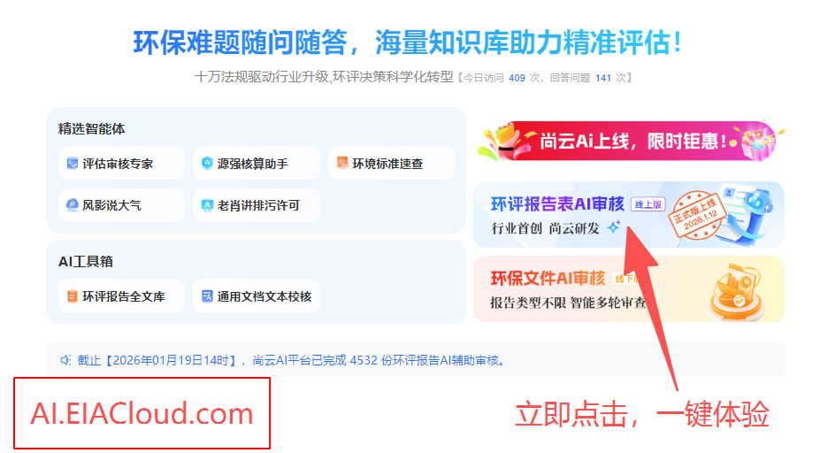 自公测以来尚未使用过尚云AI平台的用户,均可享受环评报告表免费审核权益,立省200元!